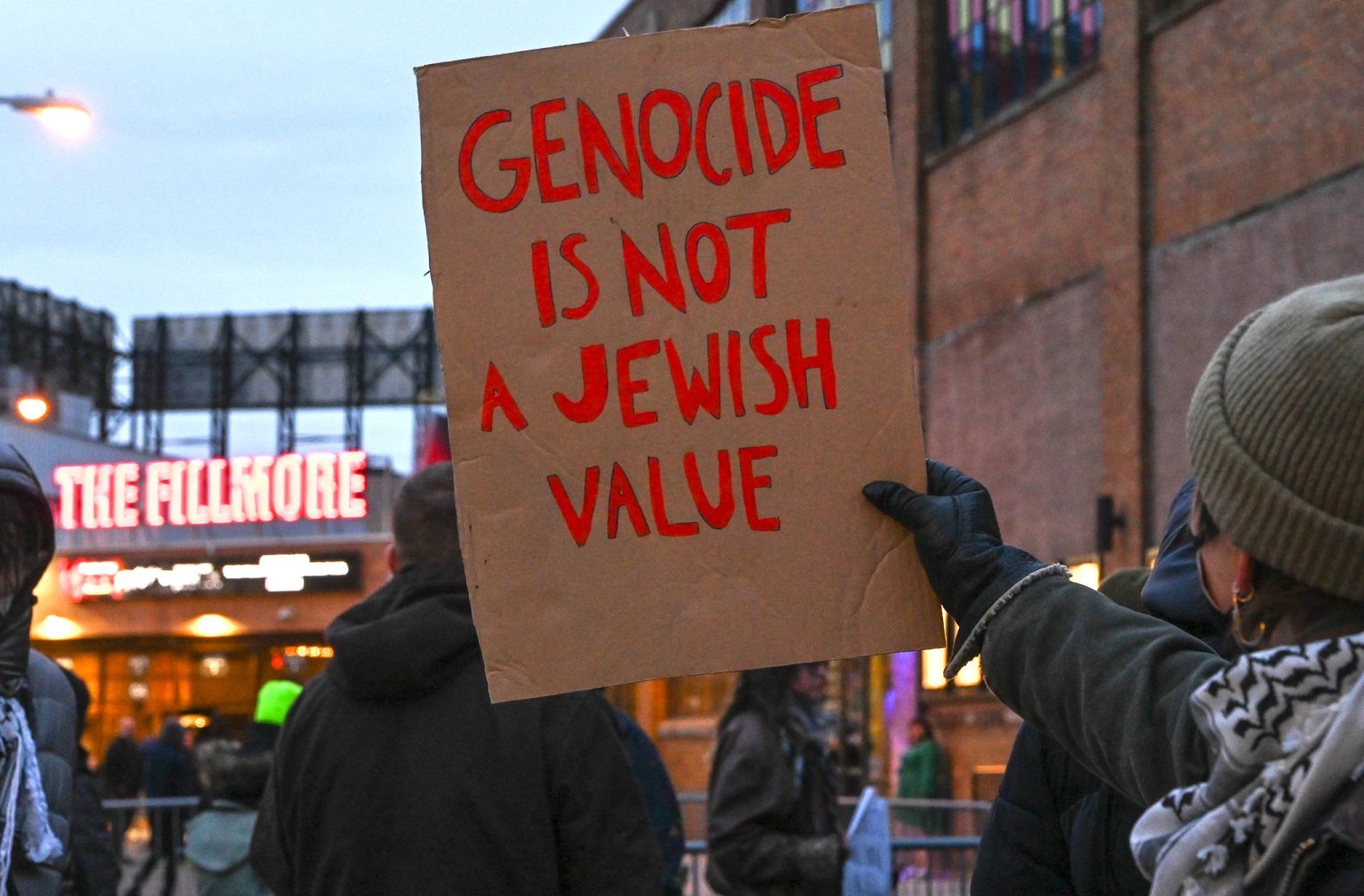 Activists at a demonstration against the pro-Israel singer Matisyahu in Philadelphia, on March 22, 2024. (Photo: Joe Piette/Flickr)
