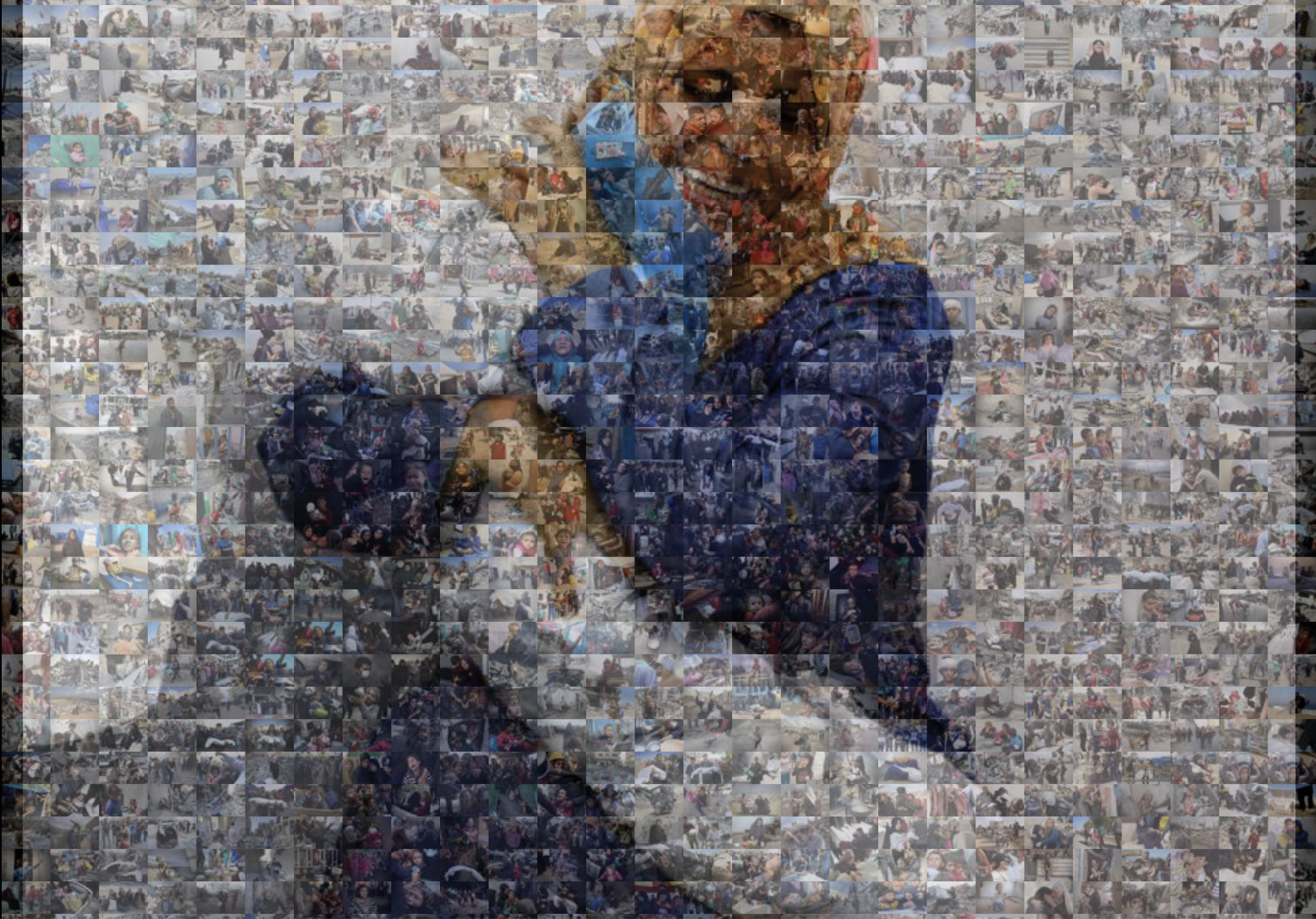 Explore an interactive mosaic of nearly 2,000 photos spanning two years in Gaza. Hover over or click on each icon to view the full image.