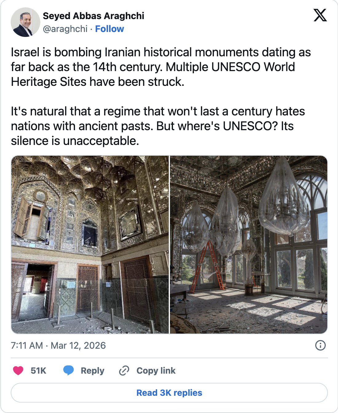 As the war drags on and the precedent is set, more heritage sites are at risk, with one Iranian official describing the attacks as a “declaration of war on a civilisation”.