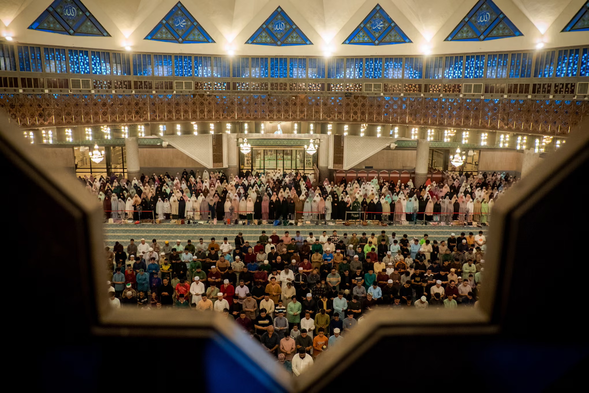 Muslims in Malaysia performing tarawih, or evening prayers, to mark the first night of Ramadan at the National Mosque in Kuala Lumpur, Malaysia.Photograph: Anadolu/Getty Images