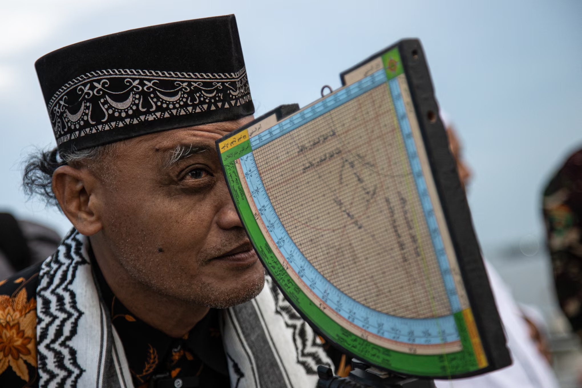 Indonesian Muslims hold a Rukyatul Hilal using rubu to observe the new crescent moon, which determines the start of Ramadan at Al-Mabrur mosque in Surabaya, Indonesia.Photograph: Robertus Pudyanto/Getty Images
