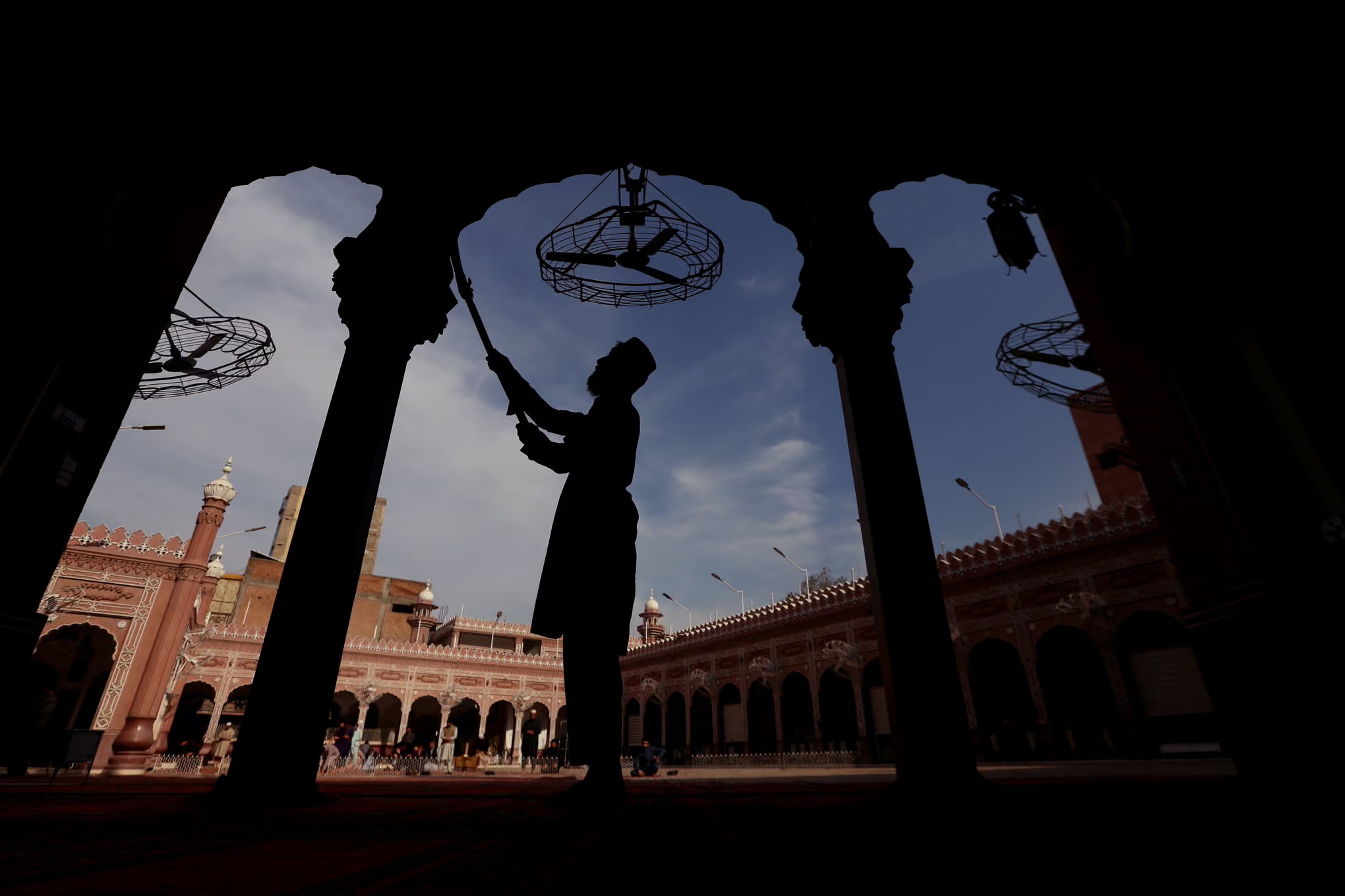 A worker cleans the Sunehri Masjid ahead of the Muslim holy month of Ramadan in Peshawar, Pakistan.Photograph: Bilawal Arbab/EPA