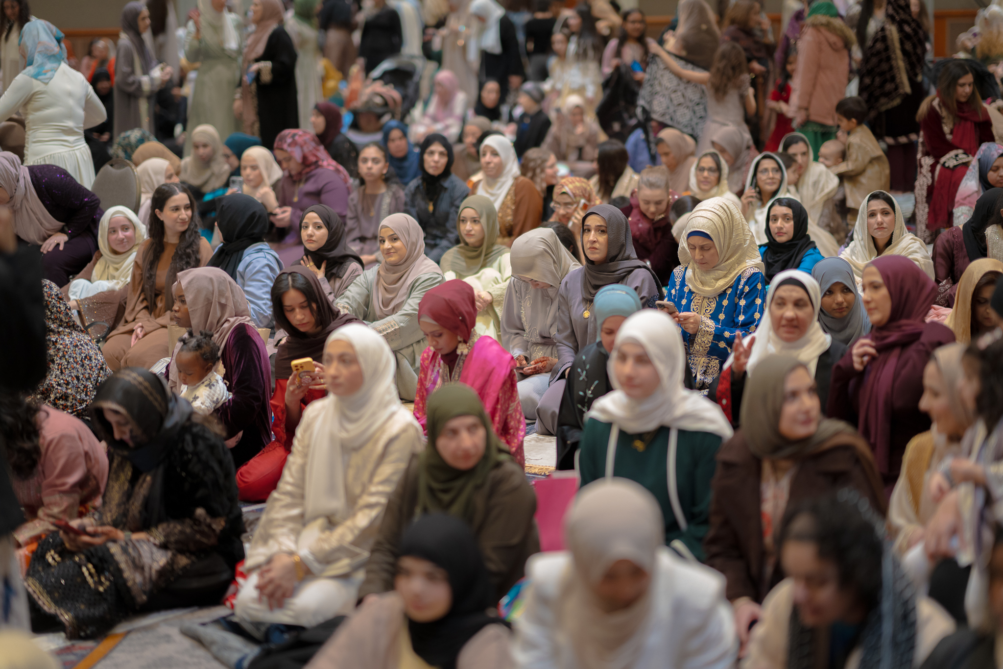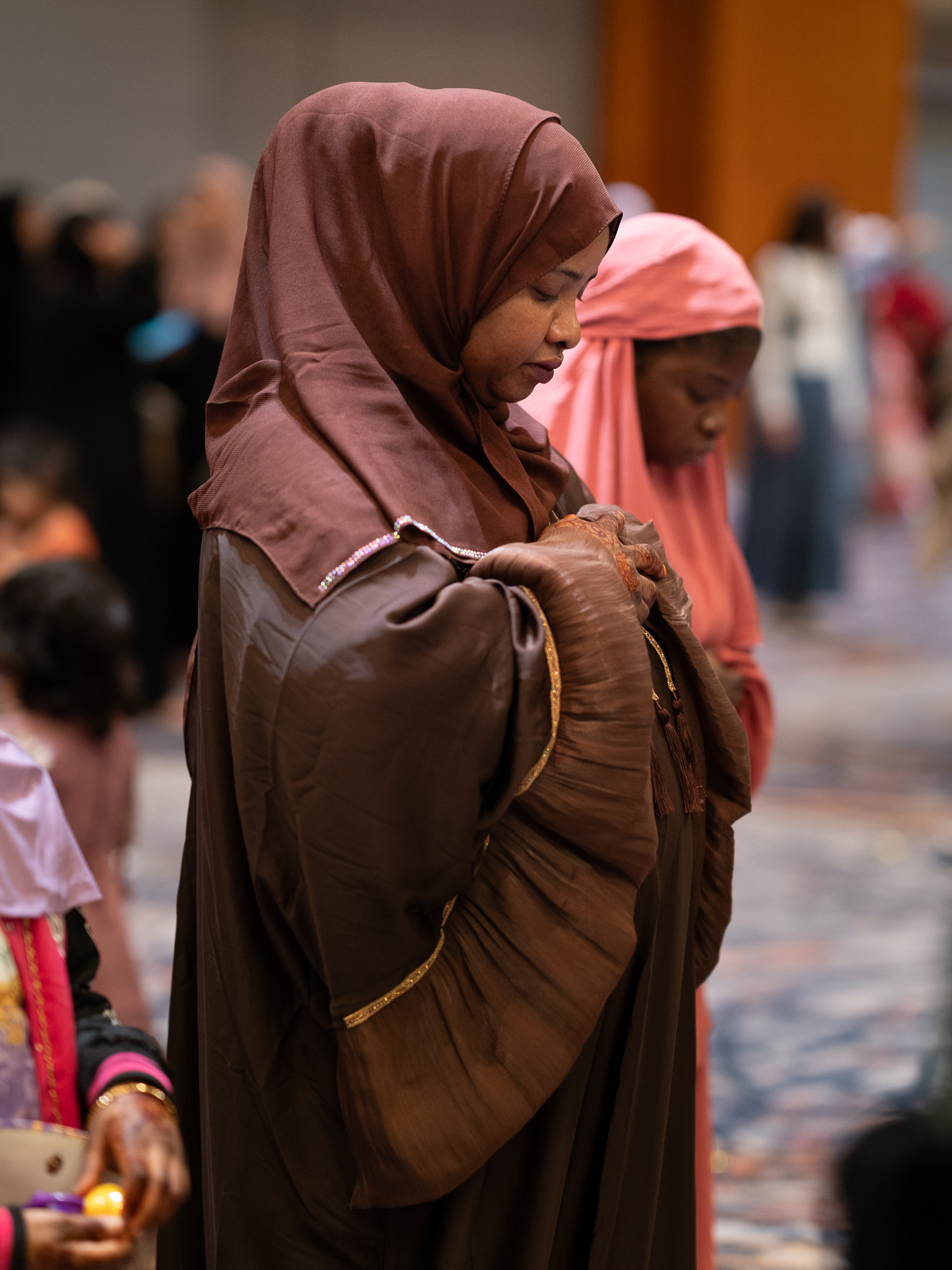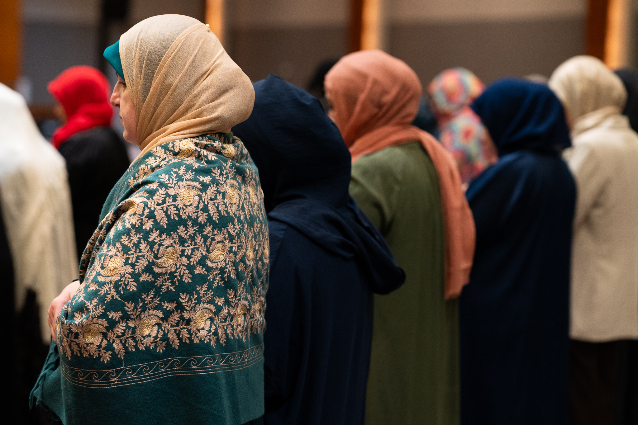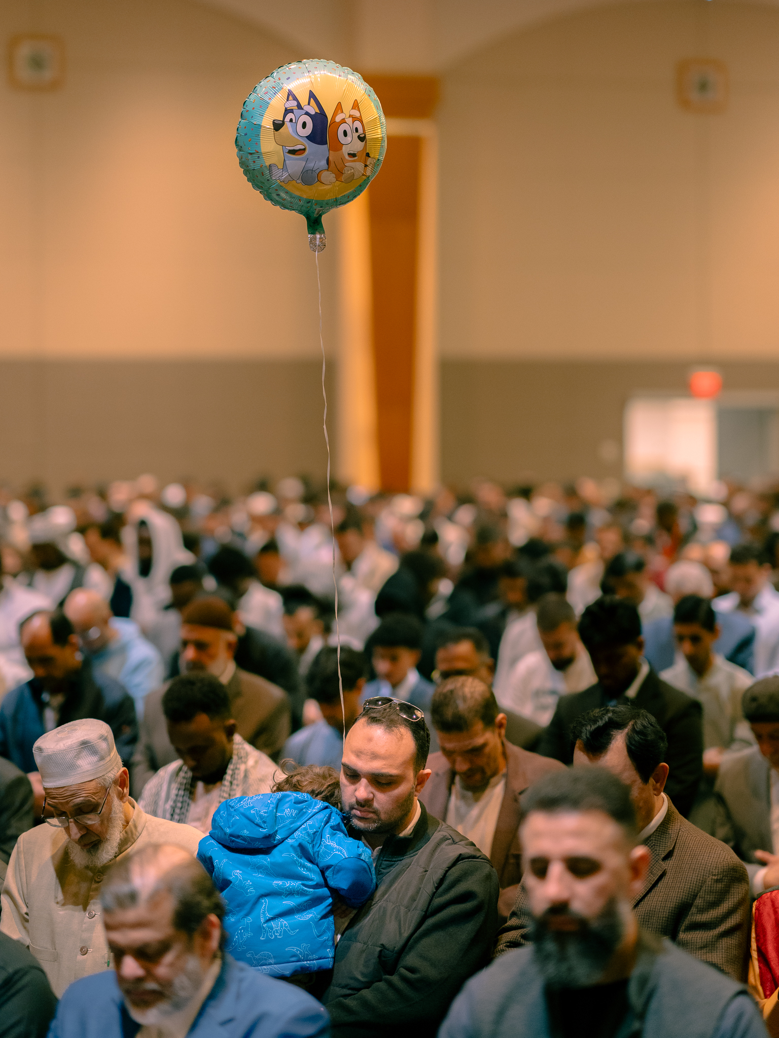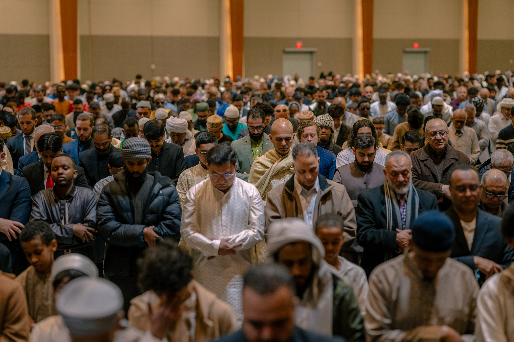 This year’s community prayer marking the end of the holy month took place on the main floor of the convention center, a shift from previous years when services were held upstairs. Despite the large venue, the carpeted space proved to be too small for an expanding Muslim community.