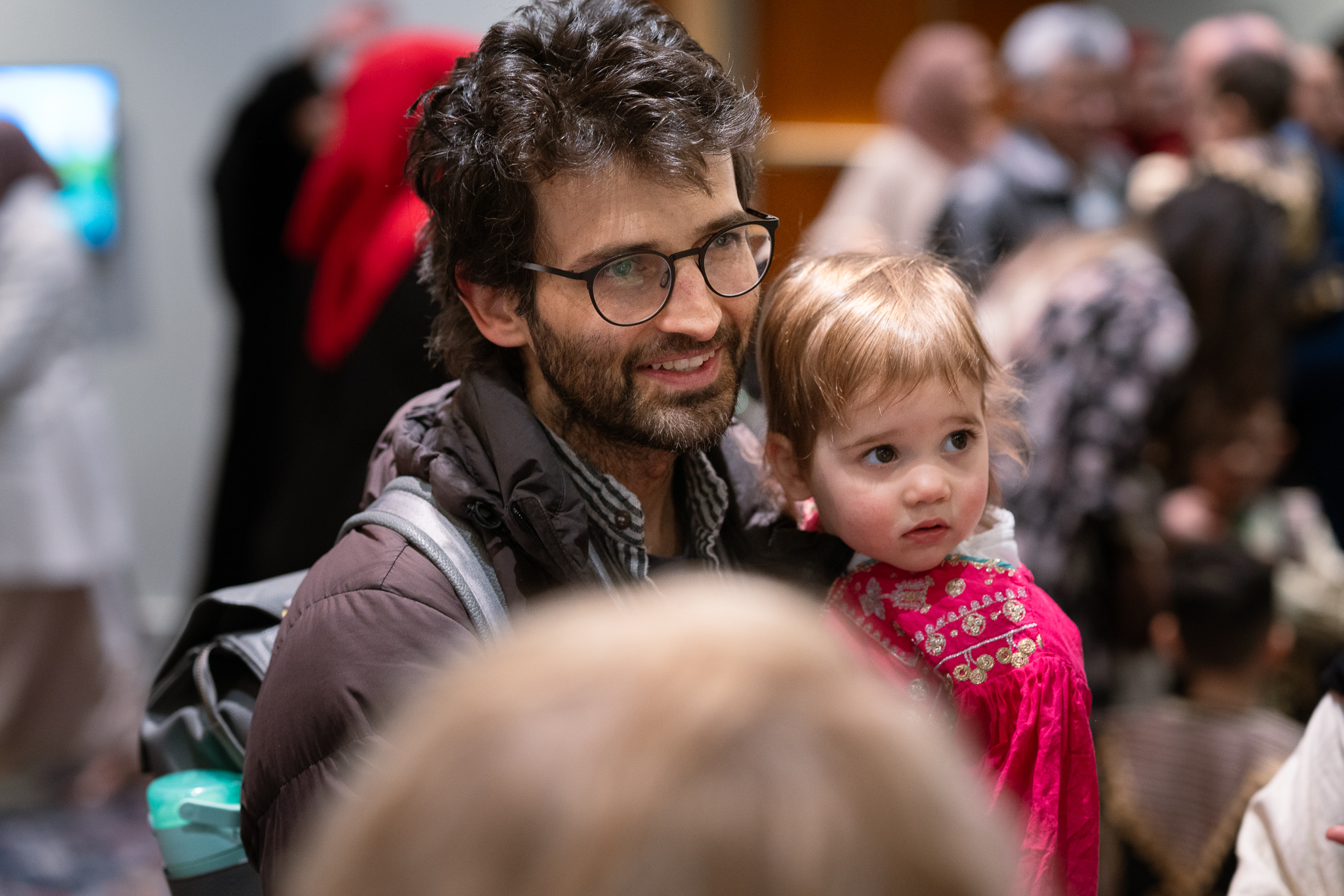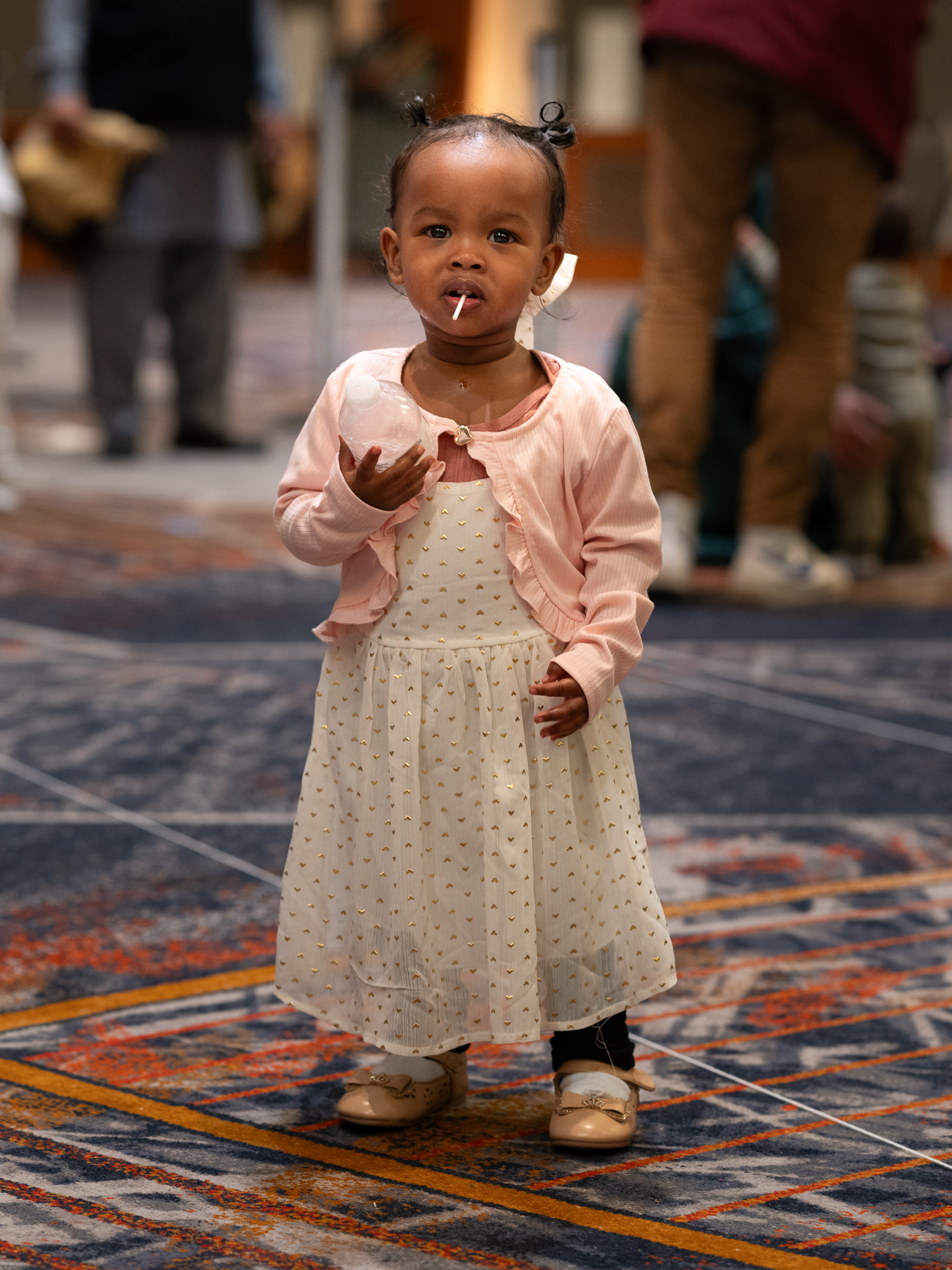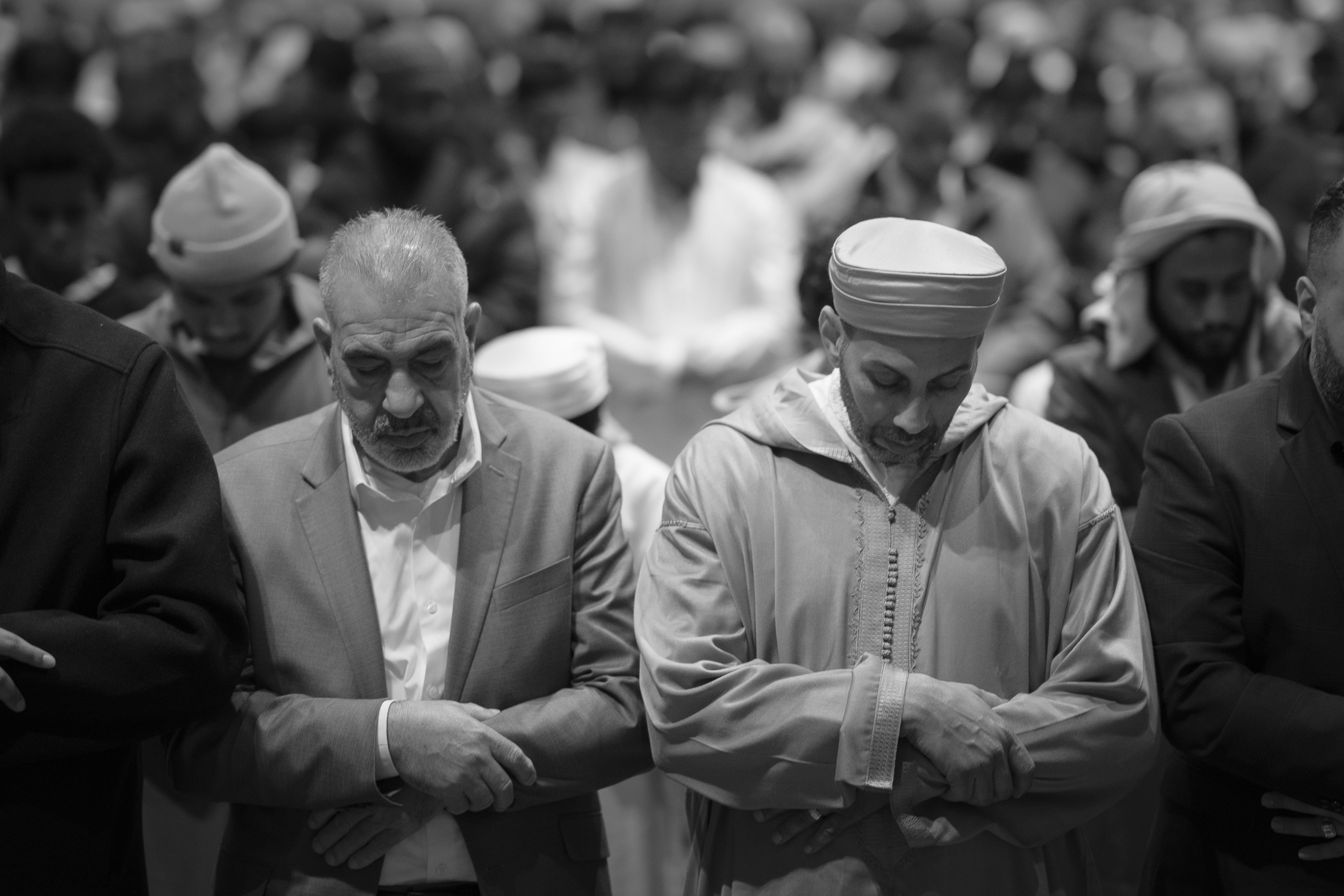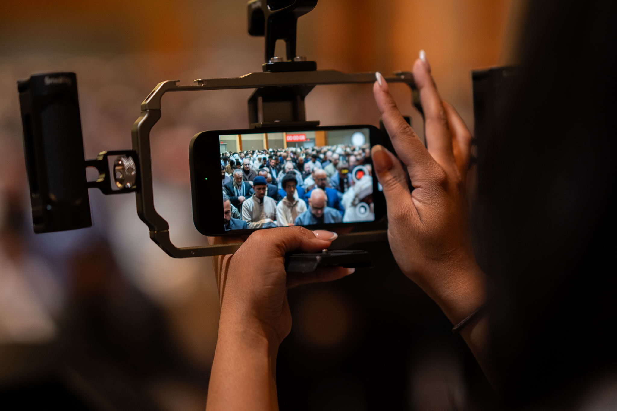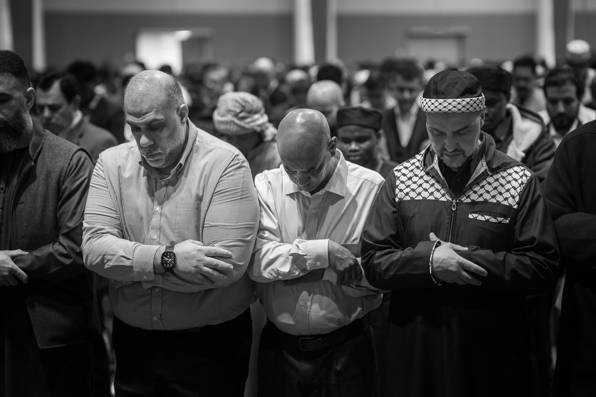 This year’s community prayer marking the end of the holy month took place on the main floor of the convention center, a shift from previous years when services were held upstairs. Despite the large venue, the carpeted space proved to be too small for an expanding Muslim community.
