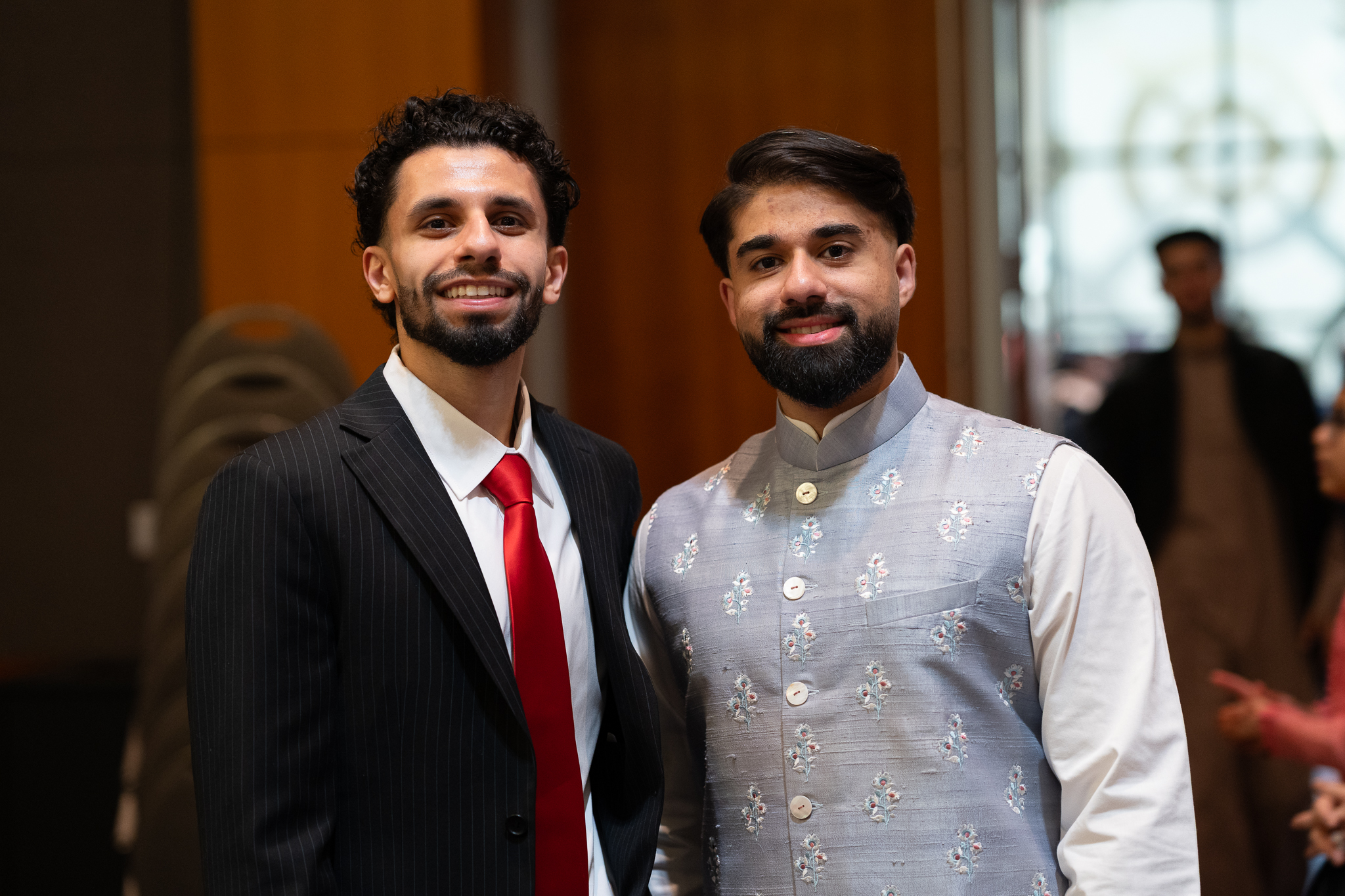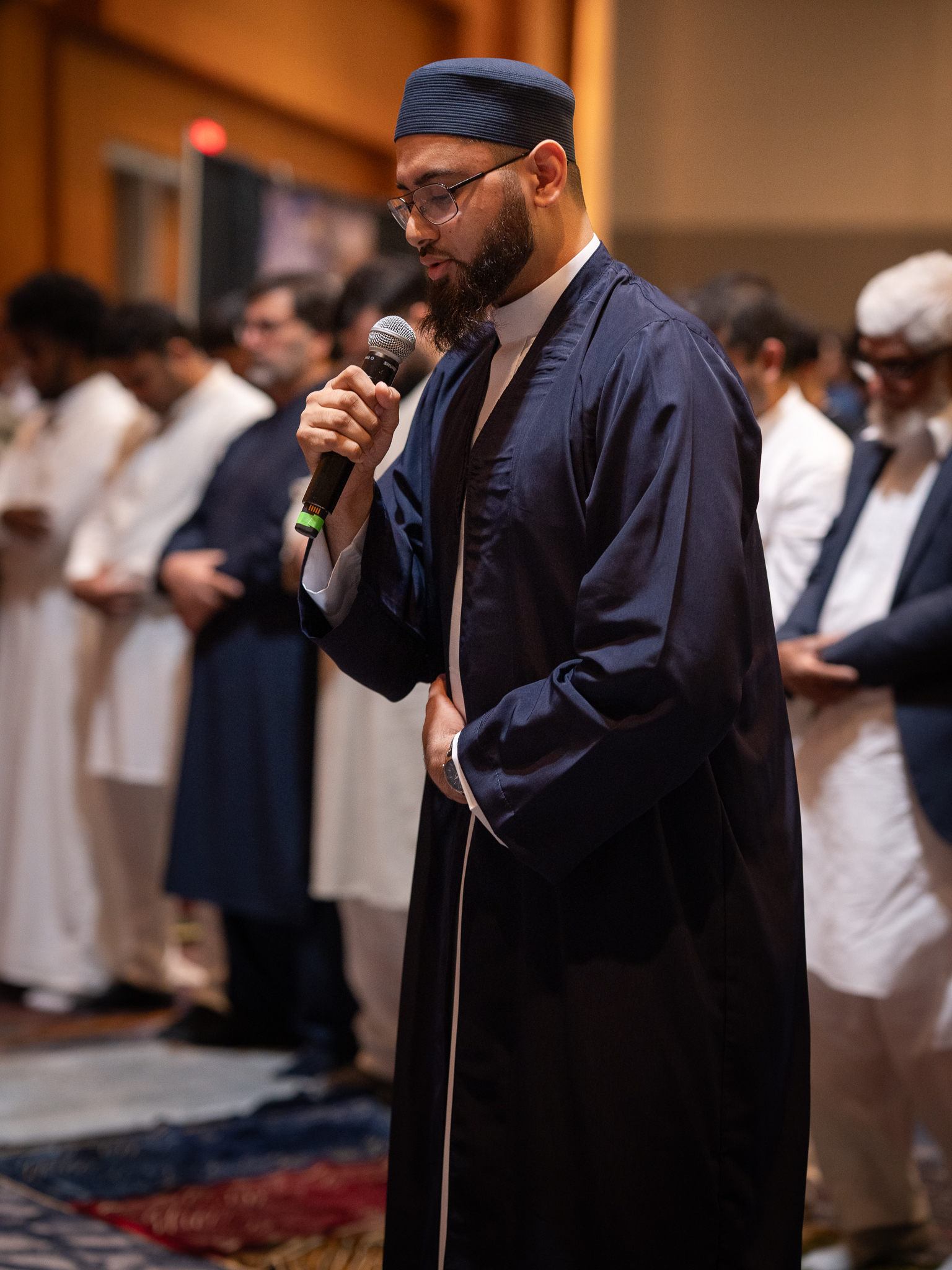 Both khutbahs (sermons) and the first prayer were delivered by Imam Shaheer Syed, but the second additional prayer to accommodate the overflow, was delivered by Imam Ziad Hamdan.