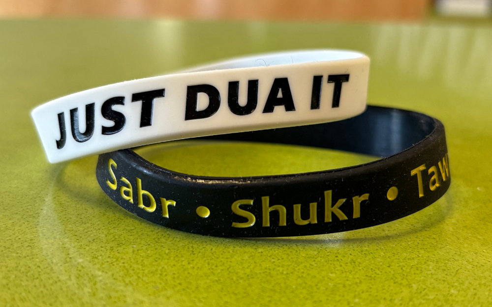 “Just dua it” and “Sabr (patience), Shukr (thanks), Tawakkal (trust), Imaan (faith) wrist bracelets available in the IRC gift shop