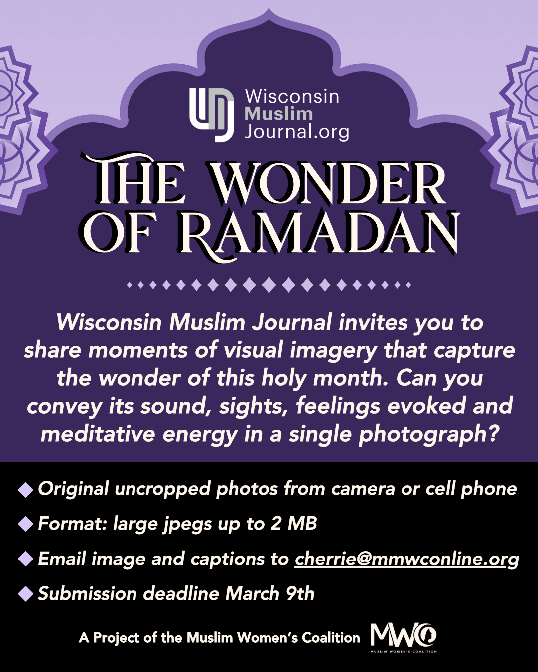 Wisconsin Muslim Journal (WMJ) is putting out a call for photos from readers that express the faith, togetherness, prayer and a reflection of Ramadan.