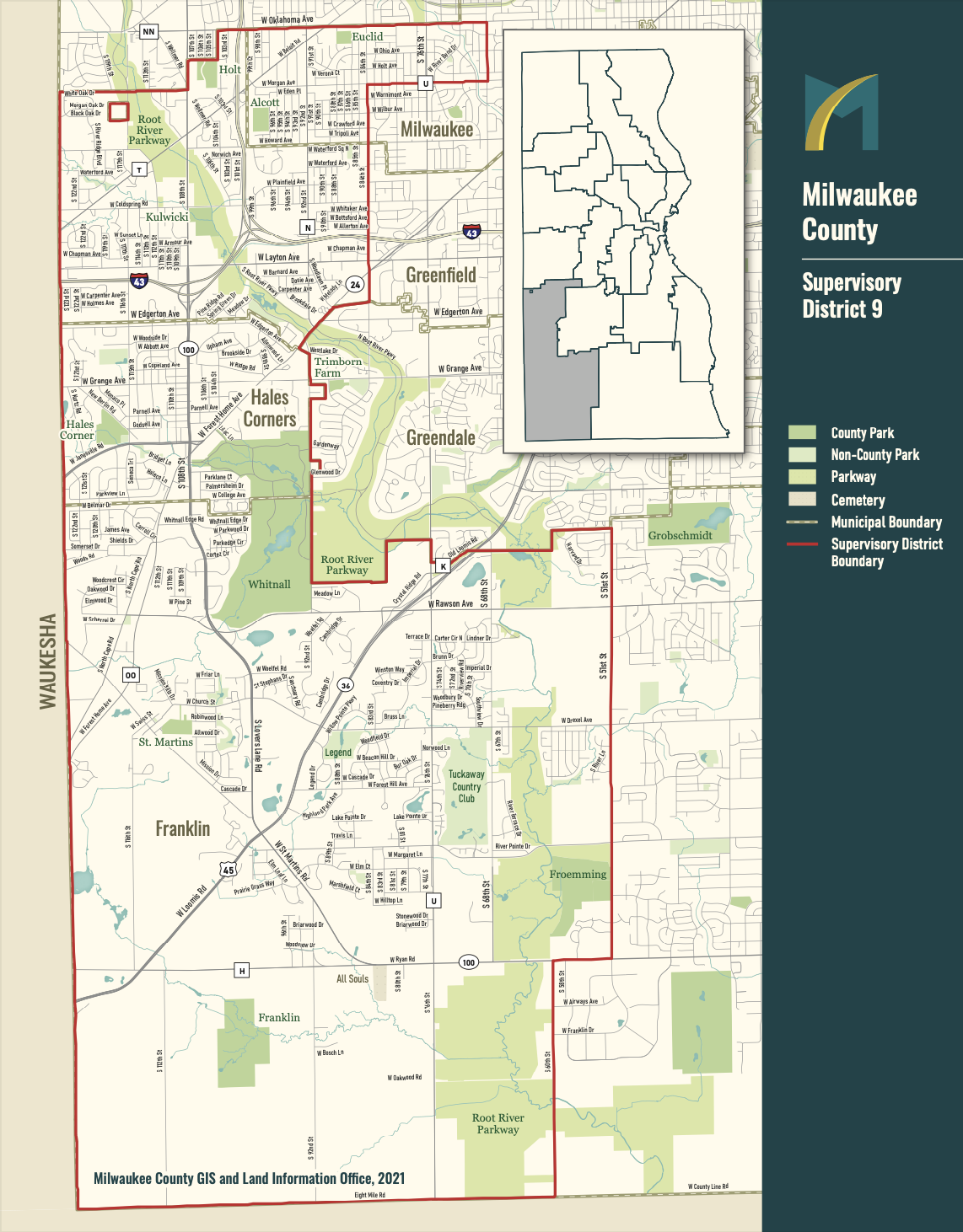 Milwaukee County Supervisory District 9 includes Franklin, Hales Corners and parts of Milwaukee and Greenfield.