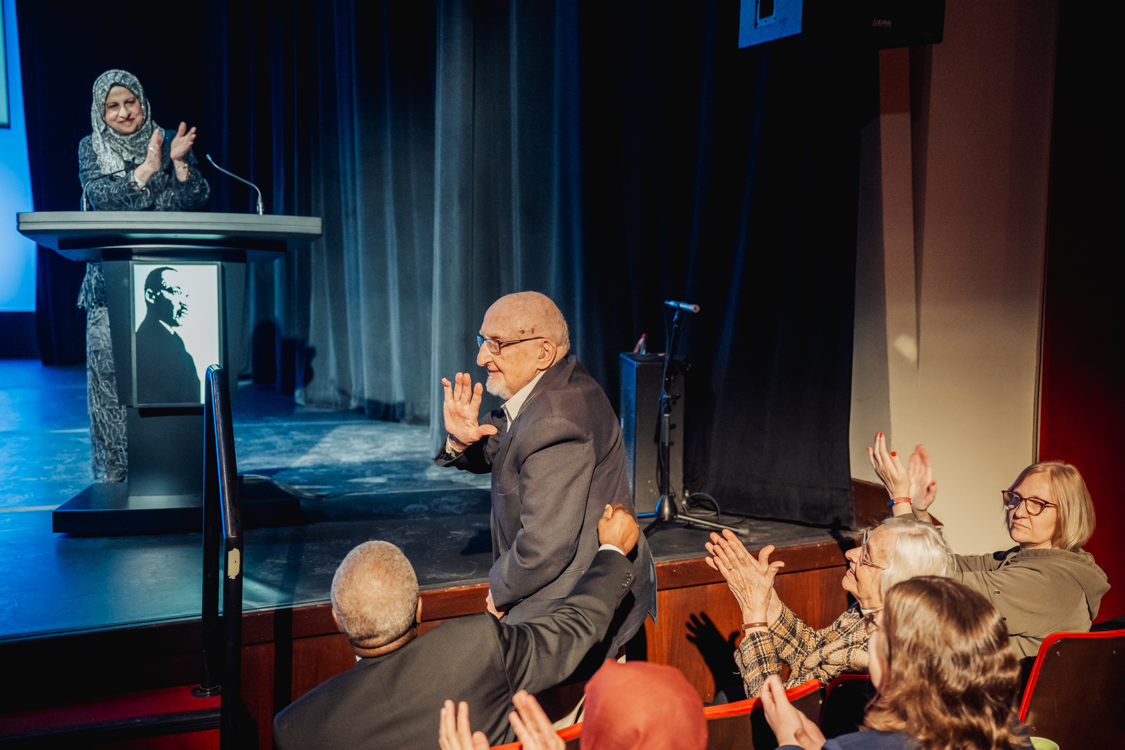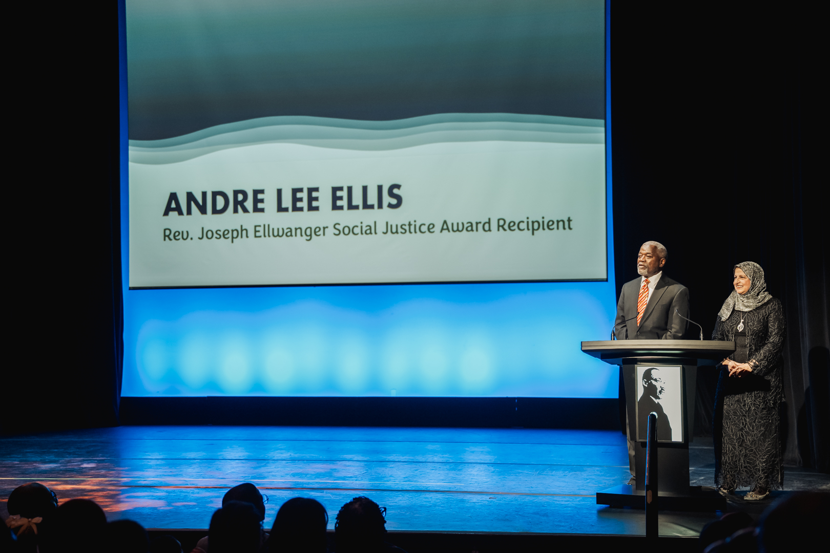 Before announcing the winner of the Rev. Joseph Ellwanger Social Justice Award, Najeeb spotted Rev. Ellwanger on the front row and asked him to stand as she described how Rev. Ellwanger had marched with Dr. King in Alabama, where Ellwanger, who is white, was the pastor of an African American church.