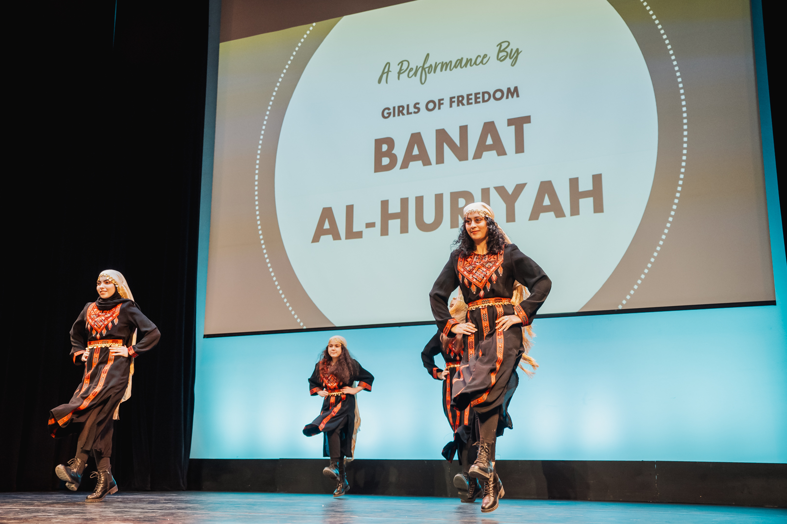 Local Milwaukee girls dabke group Banat Al-Huriyah performs traditional Palestinian dance at the MLK Birthday Celebration.