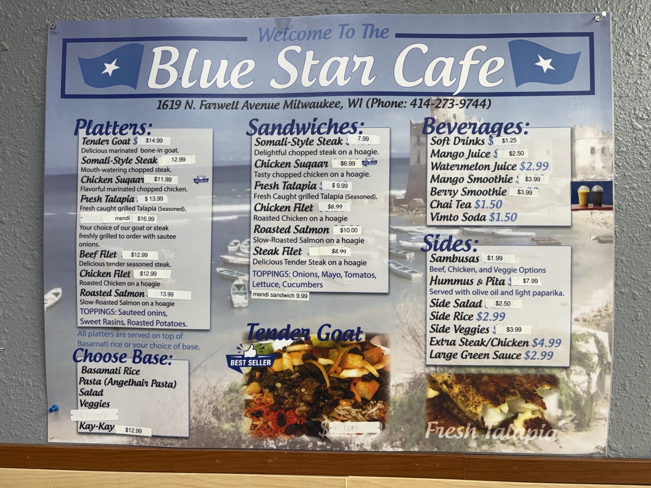 Urban Milwaukee calls Blue Star Café’s cuisine “killer Somali food at ridiculously low prices.” Milwaukee Journal Sentinel dining critic Carol Deptolla calls it “comfort food at its best.” Shepherd Express food critic Franklin K.R. Cline says its tender beef sandwich is “damn good.”