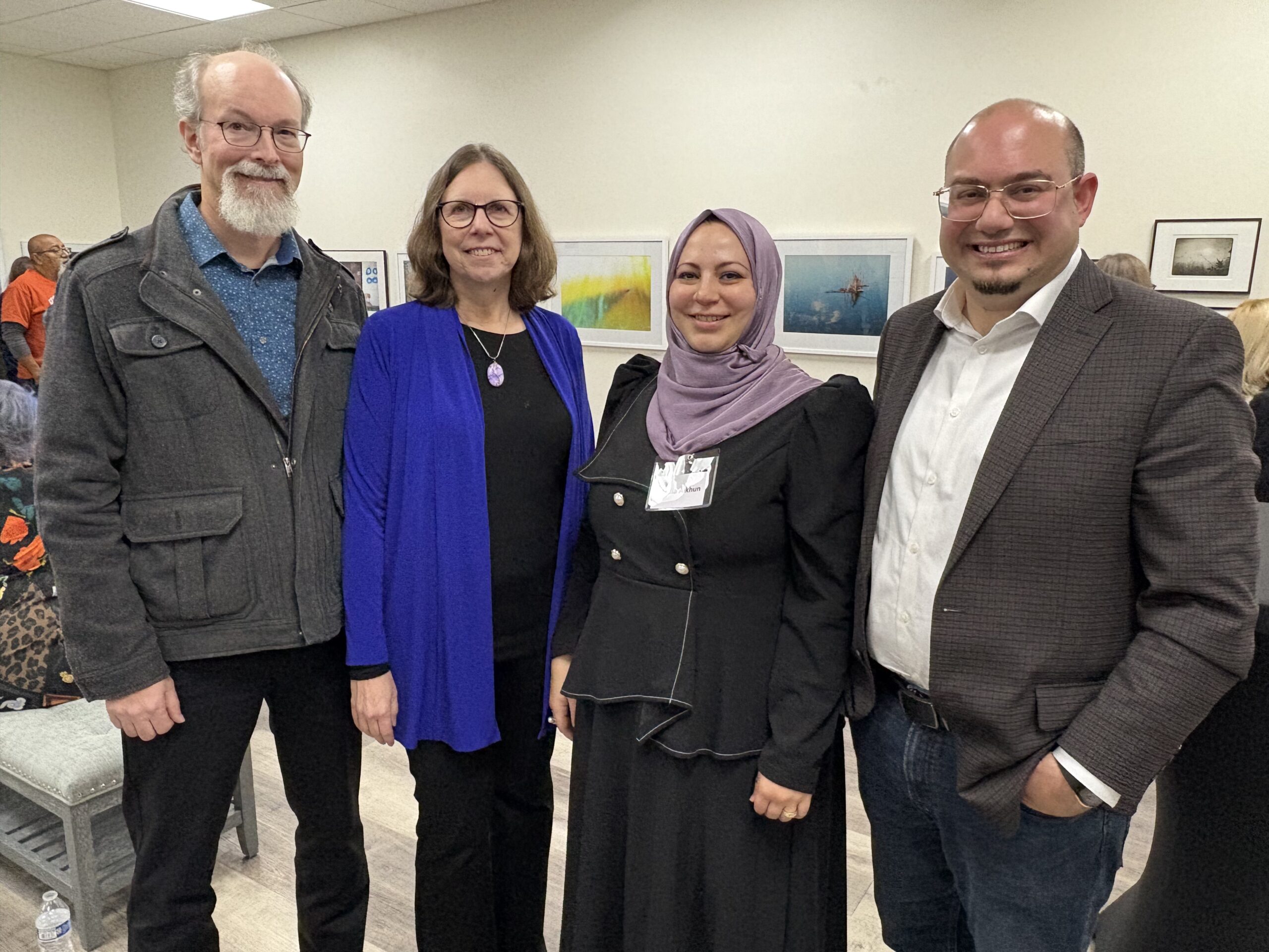 From left to right, Kevin Hansen, CoPA president, Cindy Hansen, CoPA member artist, Nadia Alkhun, Nadiana Gallery owner and Ahmed Obeidat, M.D., Ph.D., at opening night of “Atmosphere.”