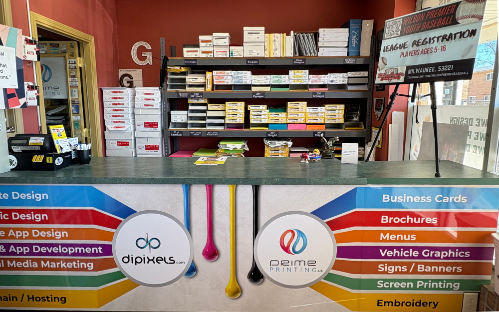 Inside the bright storefront in Hales Corners, Prime Printing customers have lots of services to choose from.