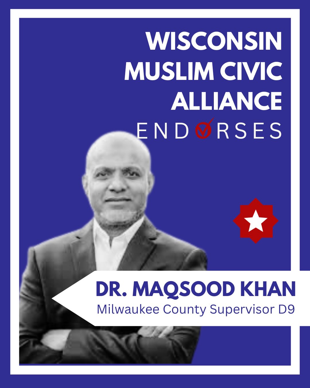 - Maqsood Khan, M.D., a two-term member of the Franklin School Board, is running to represent District 9 on the Milwaukee County Board of Supervisors.