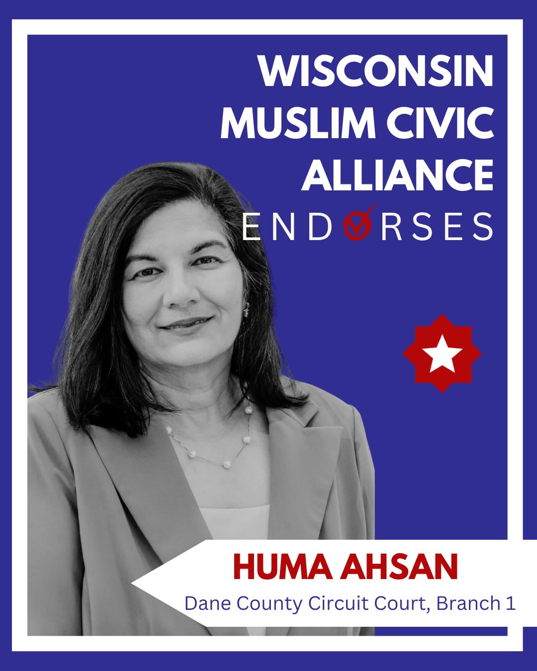 - Huma Ahsan, an attorney, former appellate judge, and founder and principal of Madison Immigration Law, is running for Dane County Circuit Court Judge, Branch 1.